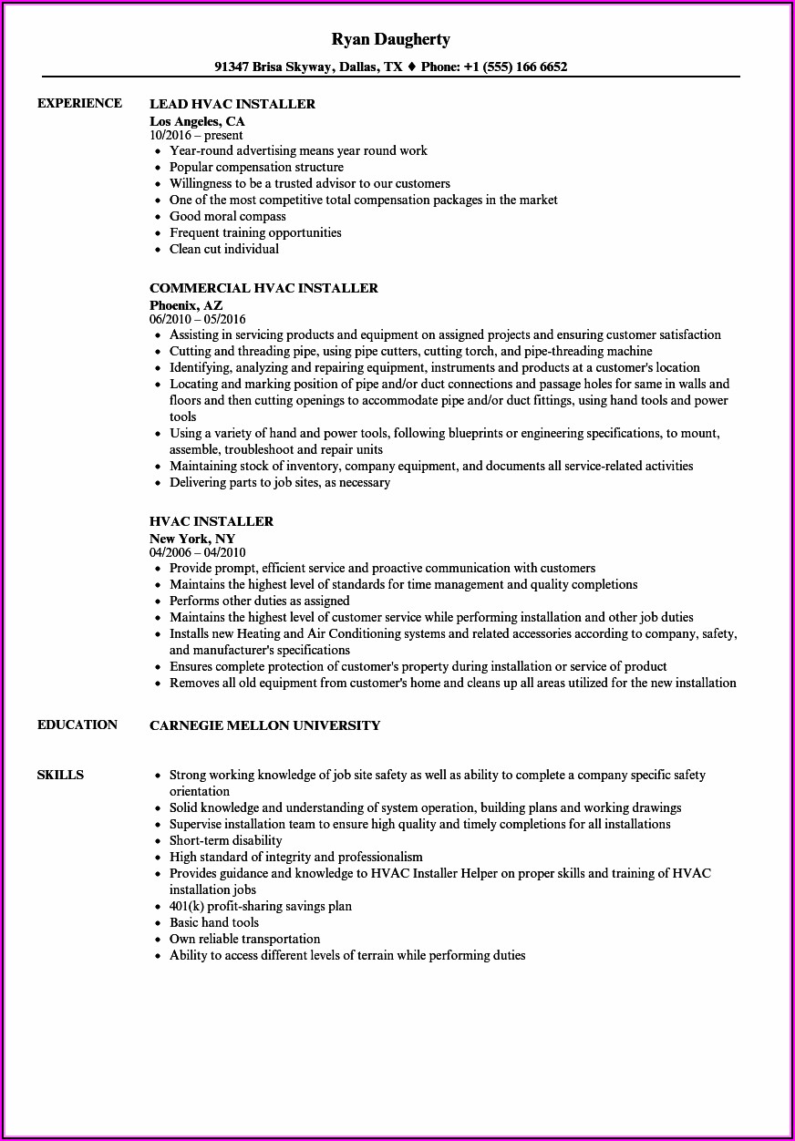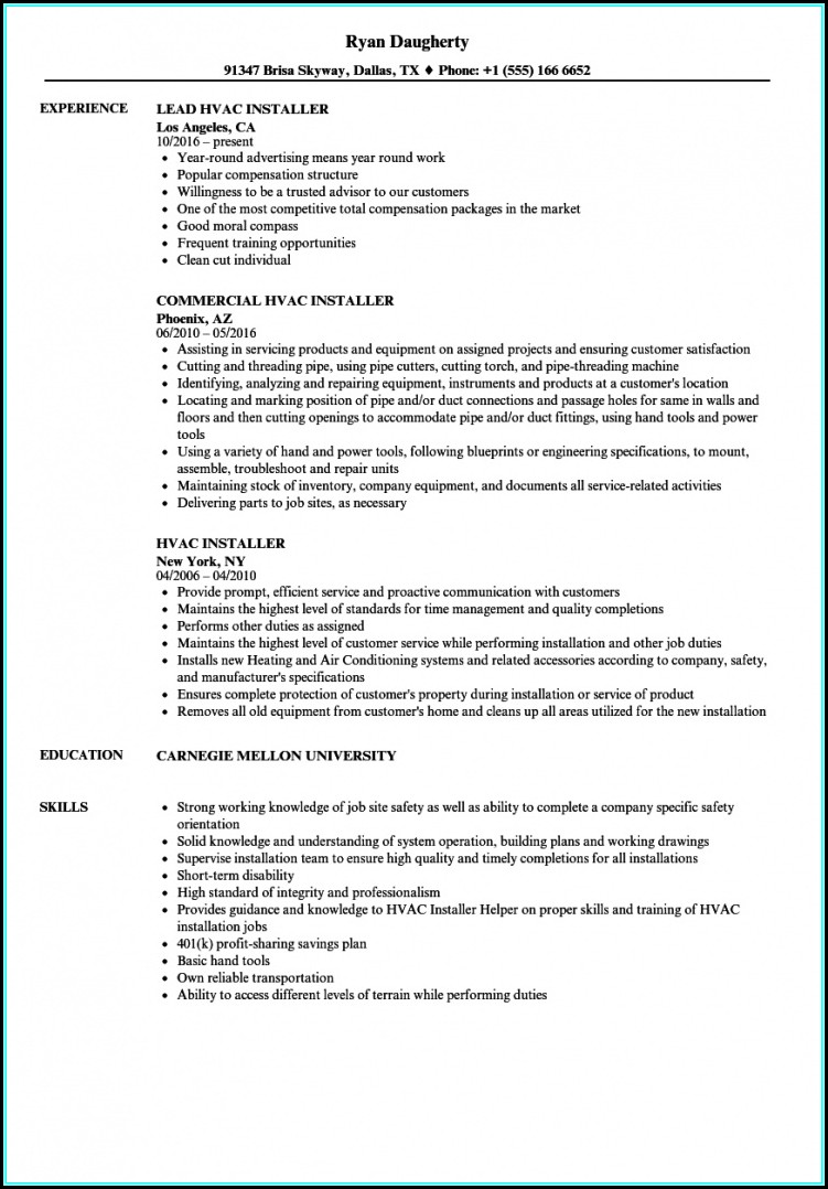 Posted inResume Hvac Installer Job Description Resume Posted by Markus Lier April 15, 2020 Markus Lier View All Posts Post navigation Previous Post Hvac Installer Helper ResumeNext PostHvac Installer Resume Samples
