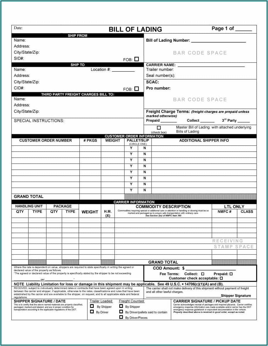 Blank Fedex Bill Of Lading Form