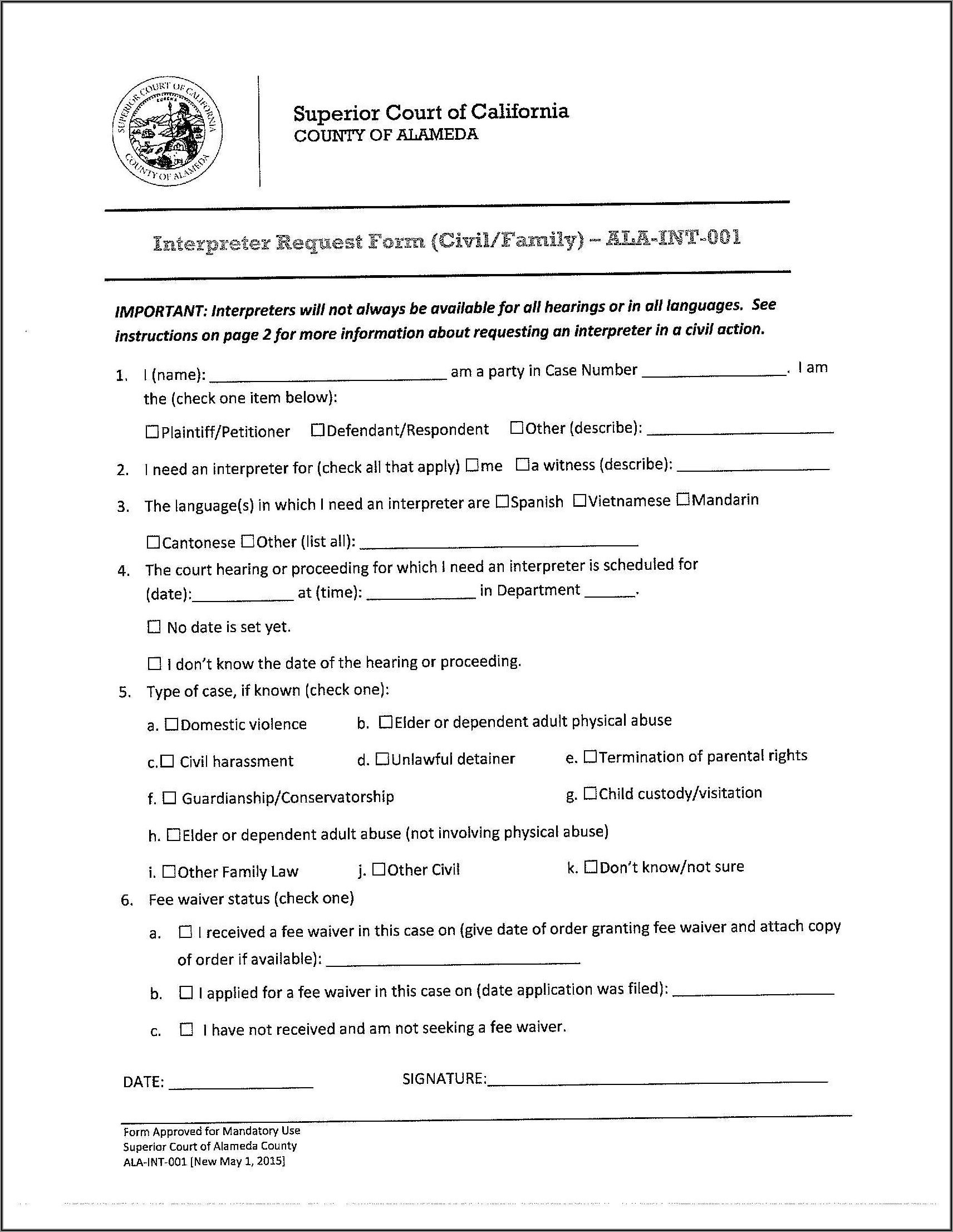 Posted inForm Alameda County Court Local Forms Posted by Astrid Axelsson October 17, 2021 Astrid Axelsson View All Posts Post navigation Previous Post Alameda County Court FormsNext PostAlameda County Divorce Filing Fee