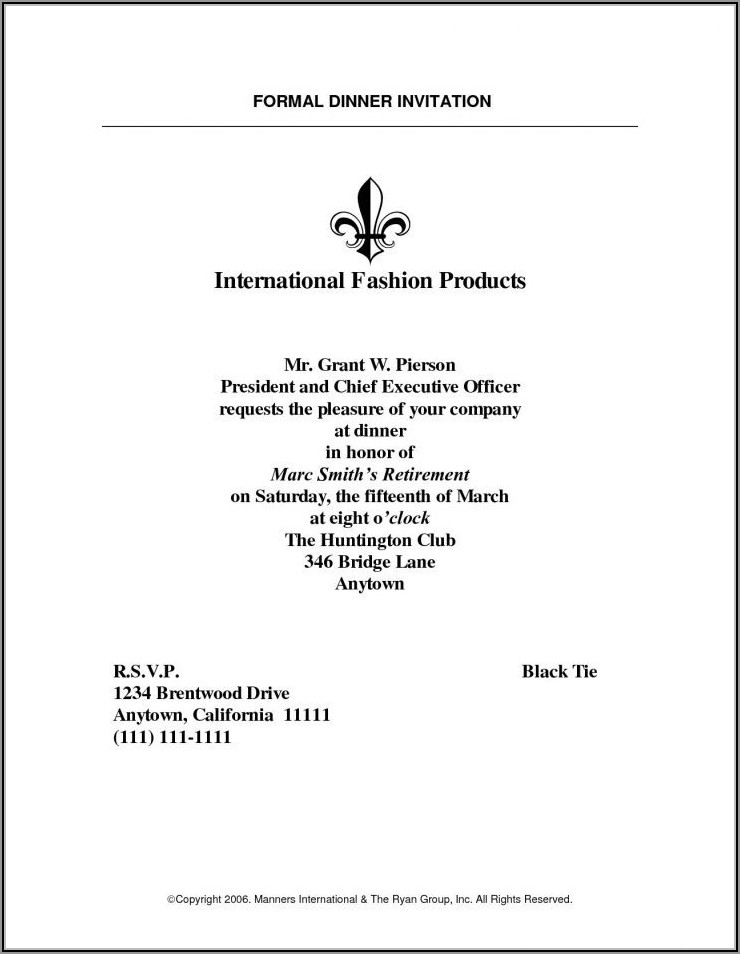 Posted inTemplate 2 Formal Business Dinner Invitation Wording Posted by Mirjam Jonsson October 23, 2021 Mirjam Jonsson View All Posts Post navigation Previous Post For Sale Flyer TemplatesNext PostFree Basic Invoice Templates