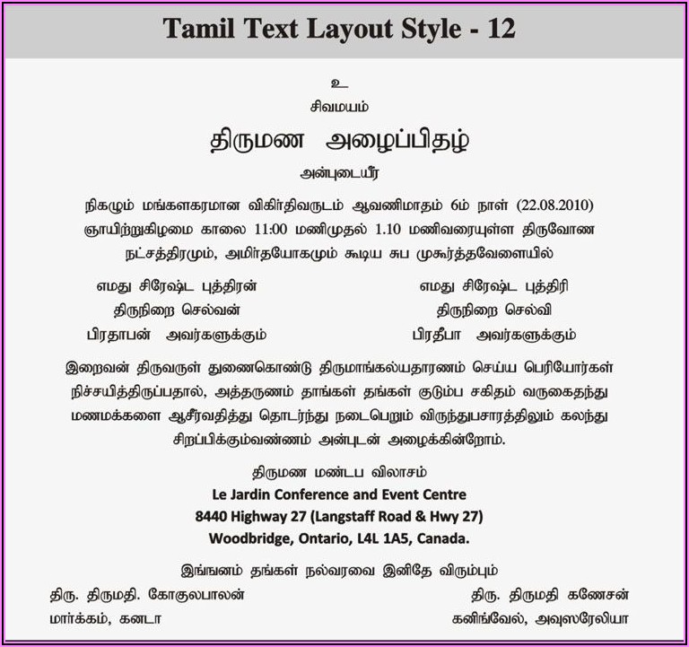Posted inInvitations Tamil Kavithai Marriage Invitation Wordings In Tamil Language Posted by Levi Dickinson December 16, 2021 Levi Dickinson View All Posts Post navigation Previous Post Taco Bout A Baby InvitationsNext PostTamil Wedding Invitation Wording