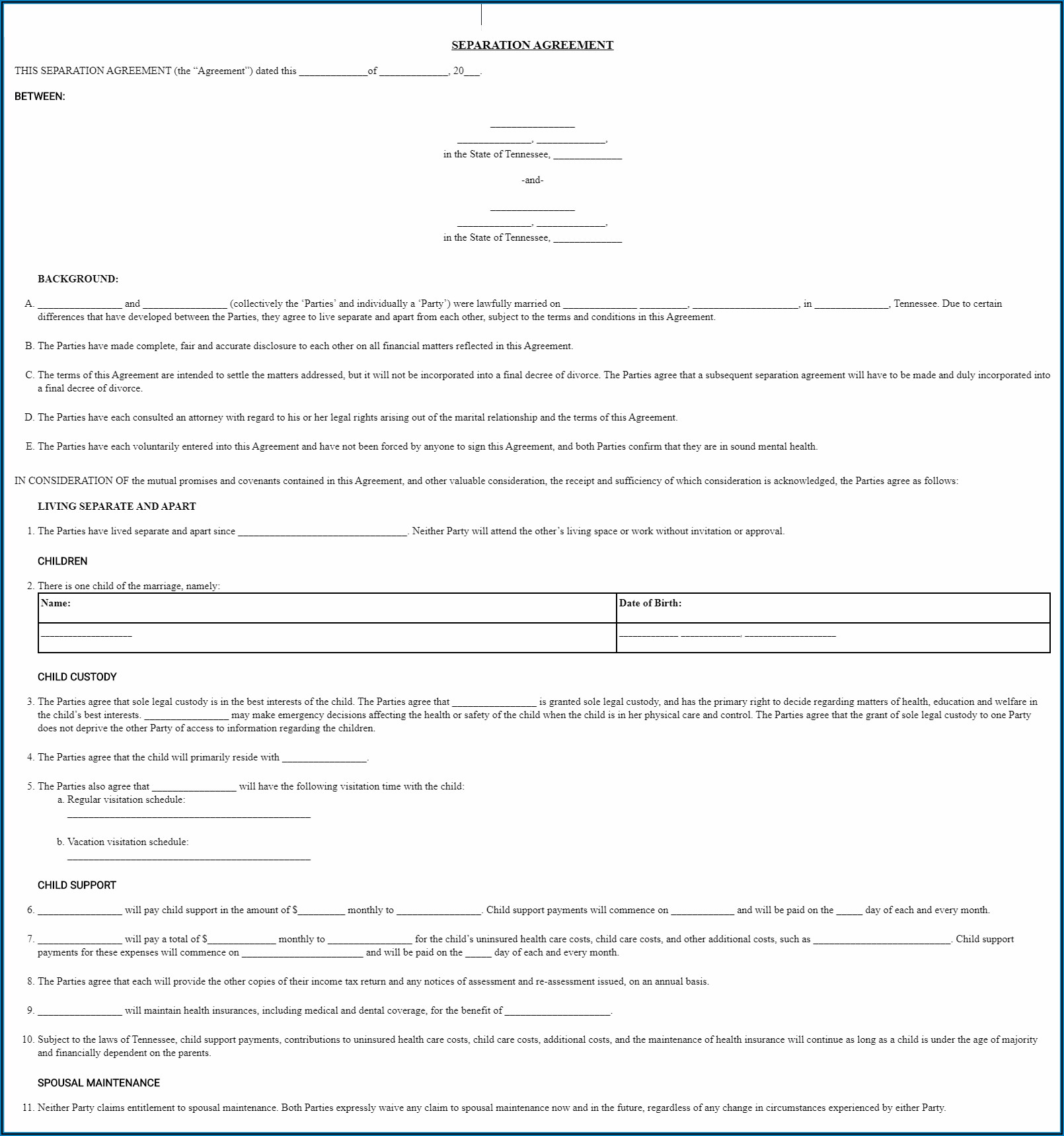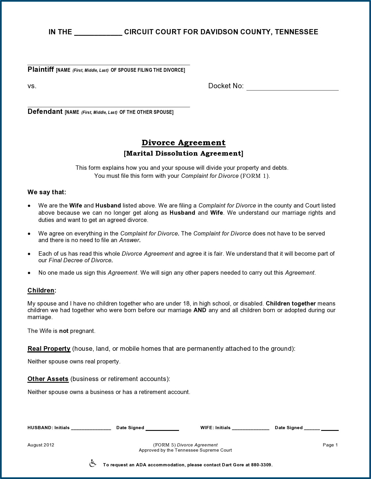 Tennessee Divorce Forms With Property